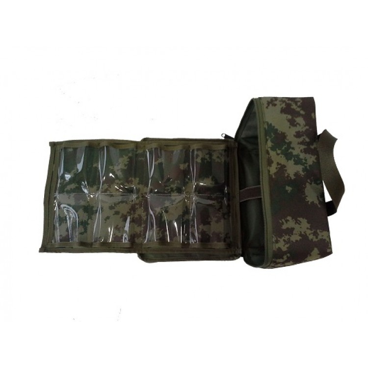 - İlk yardım çantasının fermuarlı kapağı açıldıktan sonra ona sabitlenmiş asetatlı malzemeden yapılmış 8 adet 100 mm lik şeffaf cepler bulunmaktadır.